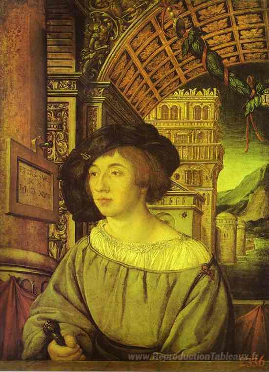 Nous vous proposons une reproduction artisanale sur toile du célèbre tableau 'Portrait d'un jeune homme' de Hans Holbein the Younger, provenant du Musée de la Reproduction.