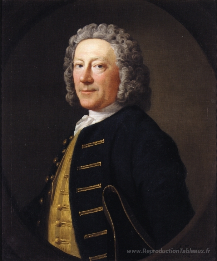 Nous vous proposons une reproduction artisanale sur toile du célèbre tableau 'Portrait d'un officier de marine' de Allan Ramsay, provenant du Musée de la Reproduction.
