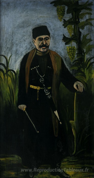 Nous vous proposons une reproduction artisanale sur toile du célèbre tableau 'Portrait d'un paysan riche' de Niko Pirosmani, provenant du Musée de la Reproduction.