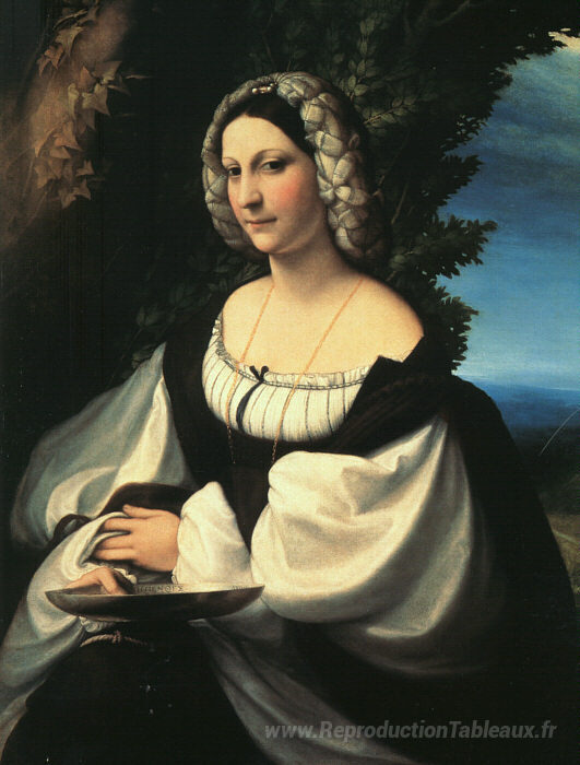 Nous vous proposons une reproduction artisanale sur toile du célèbre tableau 'Portrait d'une douce femme' de Correggio, provenant du Musée de la Reproduction.