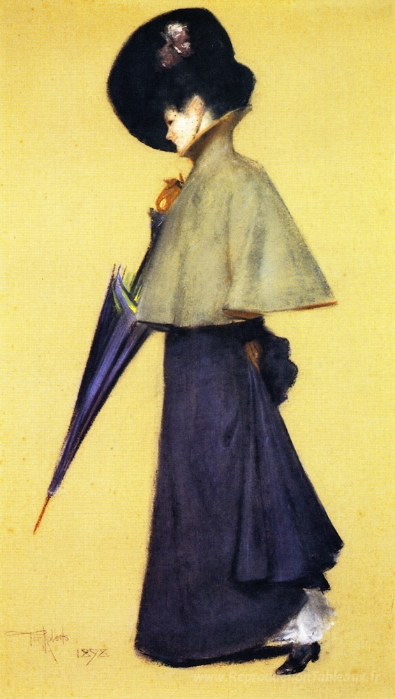 Nous vous proposons une reproduction artisanale sur toile du célèbre tableau 'Portrait d'une femme debout' de Tom Roberts, provenant du Musée de la Reproduction.