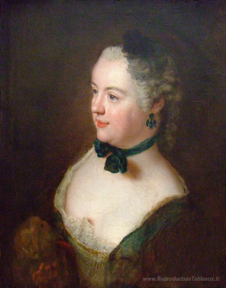 Nous vous proposons une reproduction artisanale sur toile du célèbre tableau 'Portrait d'une femme inconnue' de Antoine Pesne, provenant du Musée de la Reproduction.