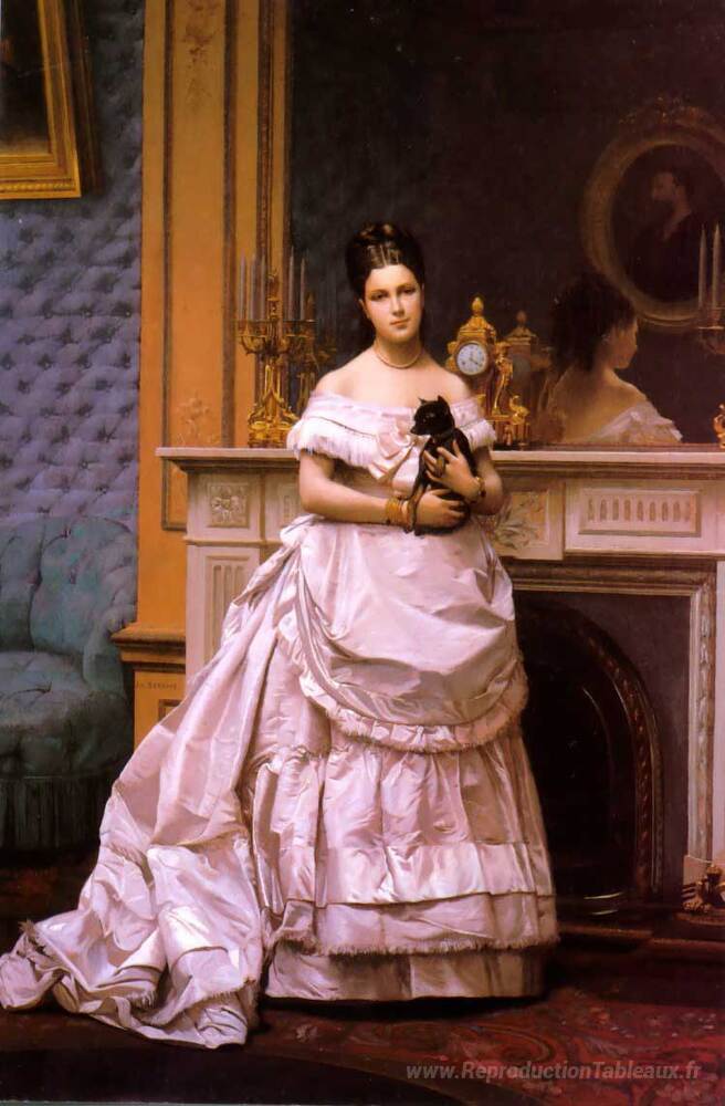Nous vous proposons une reproduction artisanale sur toile du célèbre tableau 'Portrait d'une femme' de Jean-Leon Gerome, provenant du Musée de la Reproduction.