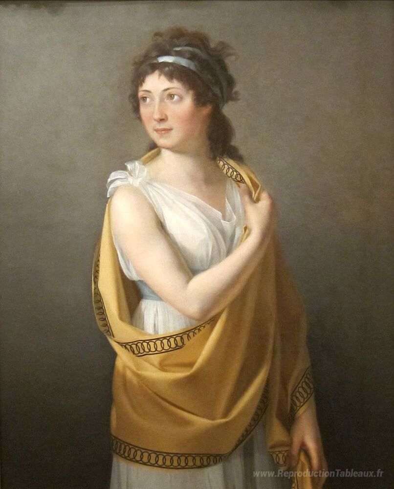 Nous vous proposons une reproduction artisanale sur toile du célèbre tableau 'Portrait d'une femme' de Marie-Guillemine Benoist, provenant du Musée de la Reproduction.