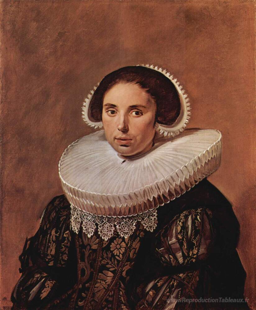 Nous vous proposons une reproduction artisanale sur toile du célèbre tableau 'Portrait d'une femme, peut-être Sara Wolphaerts Van Diemen' de Frans Hals, provenant du Musée de la Reproduction.