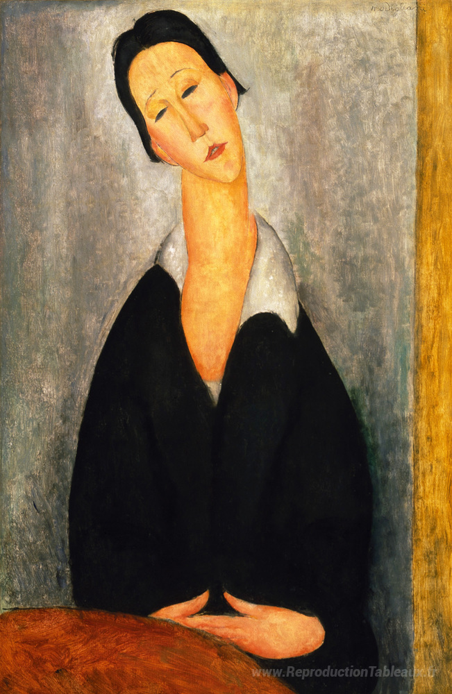 Nous vous proposons une reproduction artisanale sur toile du célèbre tableau 'Portrait d'une femme polonaise' de Amedeo Modigliani, provenant du Musée de la Reproduction.