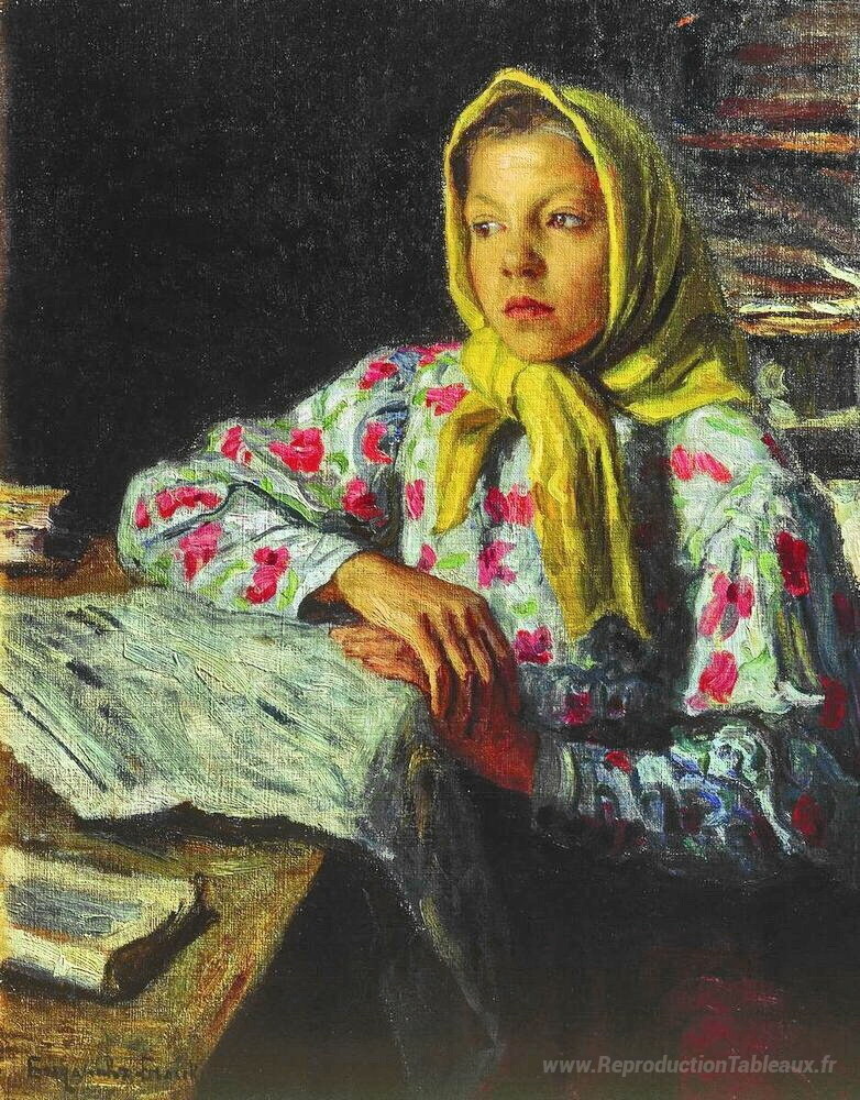 Nous vous proposons une reproduction artisanale sur toile du célèbre tableau 'Portrait d'une fille' de Nikolay Bogdanov-Belsky, provenant du Musée de la Reproduction.