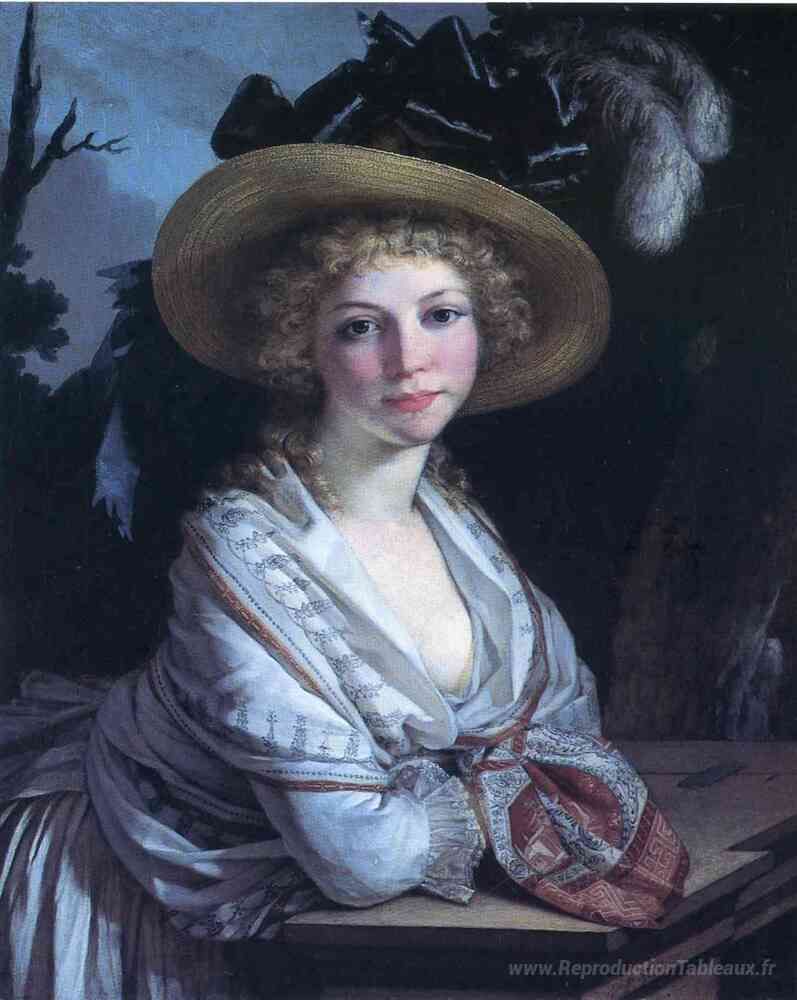 Nous vous proposons une reproduction artisanale sur toile du célèbre tableau 'Portrait d'une jeune femme' de Pierre-Paul Prud'hon, provenant du Musée de la Reproduction.