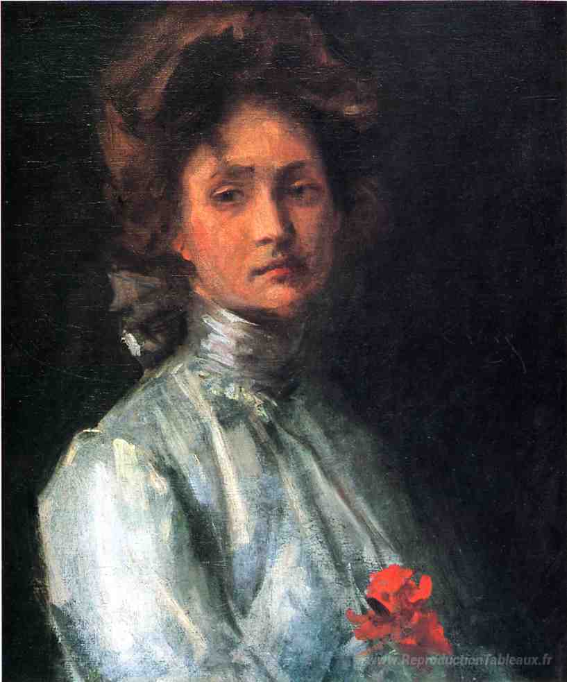 Nous vous proposons une reproduction artisanale sur toile du célèbre tableau 'Portrait d'une jeune femme' de William Merritt Chase, provenant du Musée de la Reproduction.