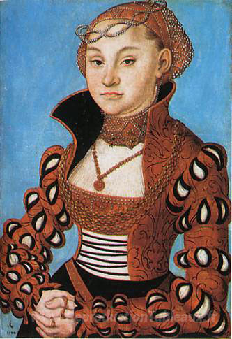 Nous vous proposons une reproduction artisanale sur toile du célèbre tableau 'Portrait d'une noble saxonne' de Lucas Cranach the Elder, provenant du Musée de la Reproduction.