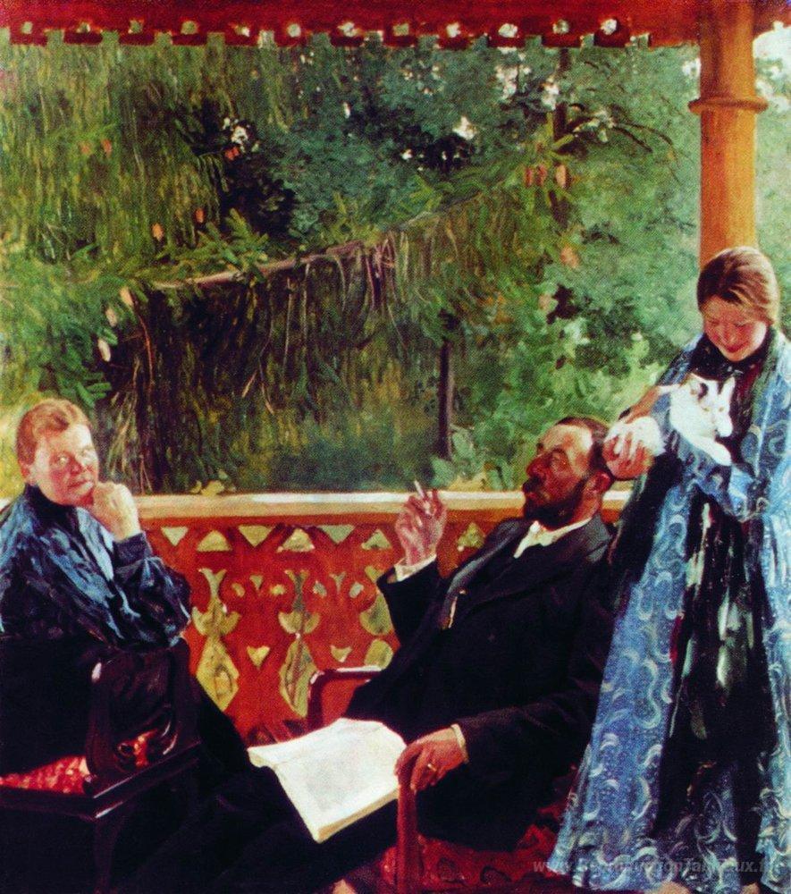 Nous vous proposons une reproduction artisanale sur toile du célèbre tableau 'Portrait familial de Polenov (portrait de famille)' de Boris Kustodiev, provenant du Musée de la Reproduction.