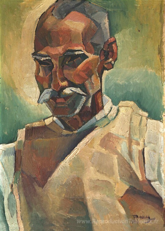 Nous vous proposons une reproduction artisanale sur toile du célèbre tableau 'Portrait paysan' de M. H. Maxy, provenant du Musée de la Reproduction.