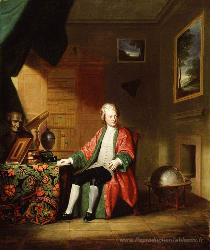 Nous vous proposons une reproduction artisanale sur toile du célèbre tableau 'Portrait supposé de William Strickland (1731–1819), dans sa bibl' de George Romney, provenant du Musée de la Reproduction.