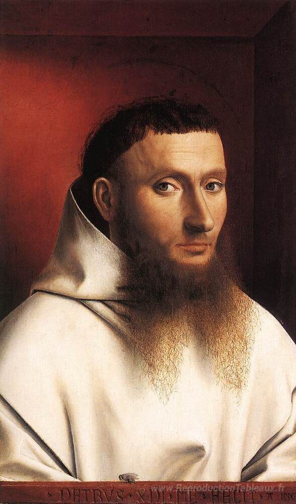 Nous vous proposons une reproduction artisanale sur toile du célèbre tableau 'Potrait d'un carthusien' de Petrus Christus, provenant du Musée de la Reproduction.