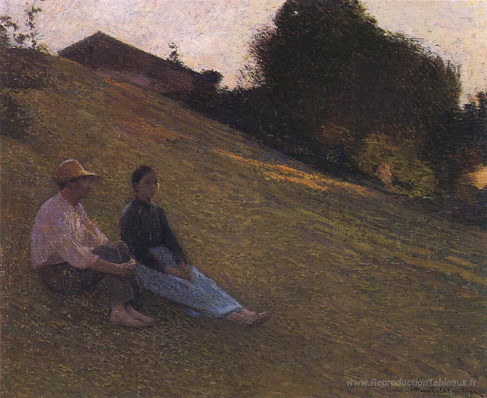 Nous vous proposons une reproduction artisanale sur toile du célèbre tableau 'Repos' de Henri Martin, provenant du Musée de la Reproduction.