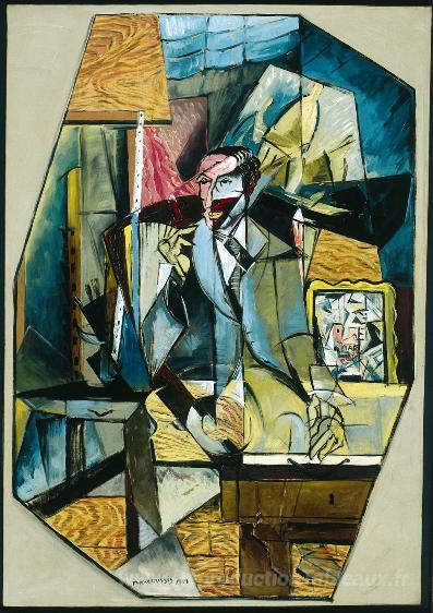 Nous vous proposons une reproduction artisanale sur toile du célèbre tableau 'Ritratto van Albert Flechteim' de Louis Marcoussis, provenant du Musée de la Reproduction.