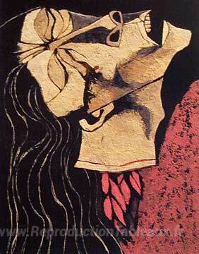 Nous vous proposons une reproduction artisanale sur toile du célèbre tableau 'Rosa Zárate, fleur décapitée' de Oswaldo Guayasamin, provenant du Musée de la Reproduction.