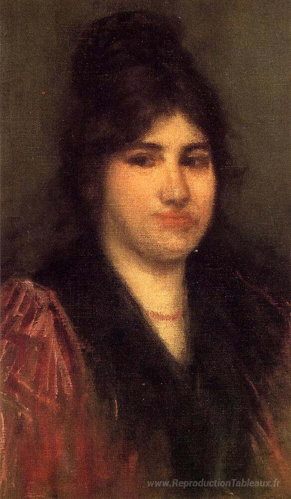 Nous vous proposons une reproduction artisanale sur toile du célèbre tableau 'Rose (alias la napolitaine)' de James McNeill Whistler, provenant du Musée de la Reproduction.