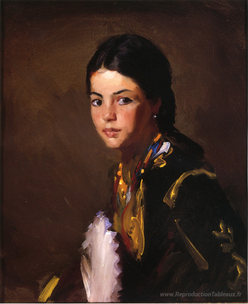 Nous vous proposons une reproduction artisanale sur toile du célèbre tableau 'Ségovienne' de Robert Henri, provenant du Musée de la Reproduction.
