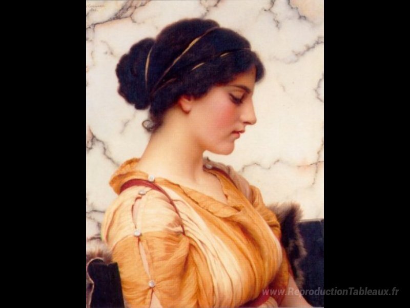 Nous vous proposons une reproduction artisanale sur toile du célèbre tableau 'Sabinella' de John William Godward, provenant du Musée de la Reproduction.