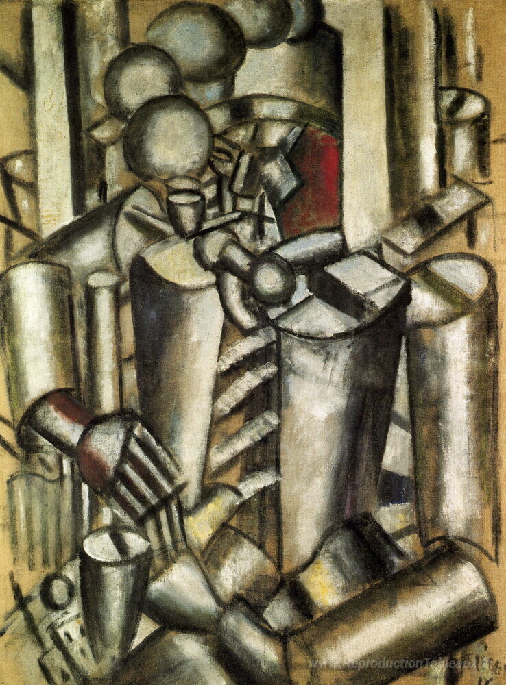 Nous vous proposons une reproduction artisanale sur toile du célèbre tableau 'Soldat avec une pipe' de Fernand Leger, provenant du Musée de la Reproduction.