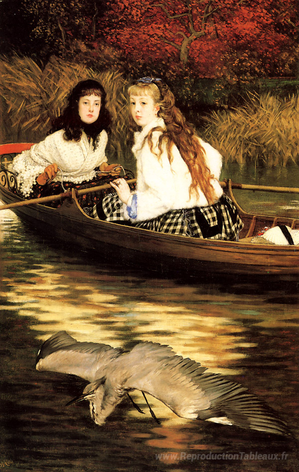Nous vous proposons une reproduction artisanale sur toile du célèbre tableau 'Sur la Tamise, un héron' de James Tissot, provenant du Musée de la Reproduction.