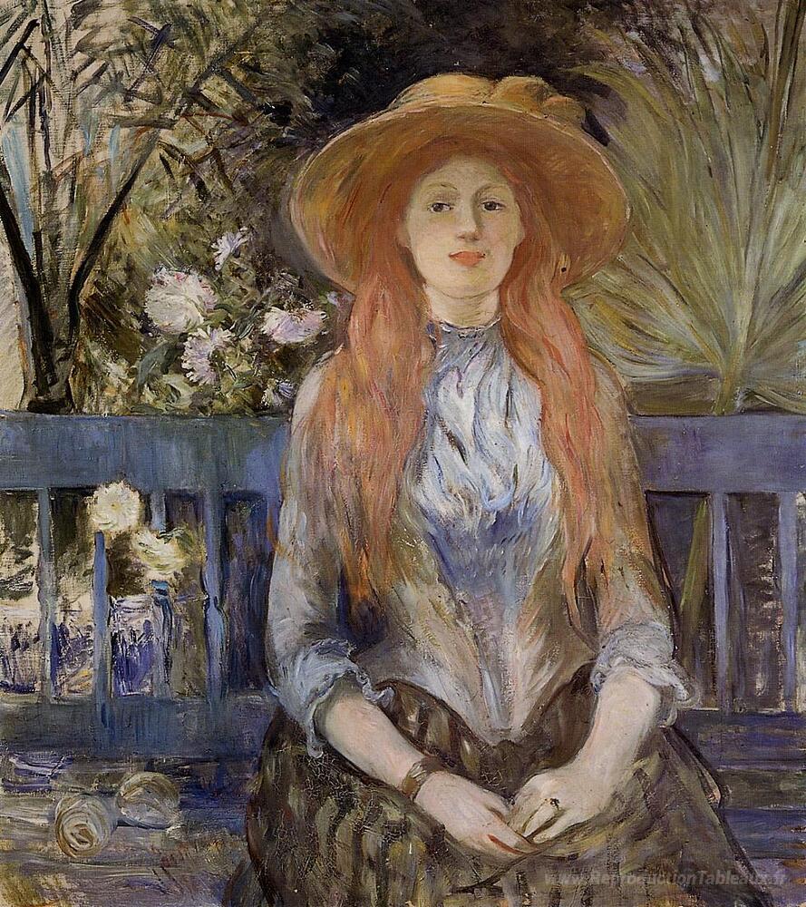 Nous vous proposons une reproduction artisanale sur toile du célèbre tableau 'Sur un banc' de Berthe Morisot, provenant du Musée de la Reproduction.