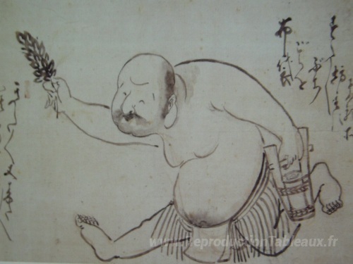 Nous vous proposons une reproduction artisanale sur toile du célèbre tableau 'Sutasuta Bozu' de Hakuin Ekaku, provenant du Musée de la Reproduction.