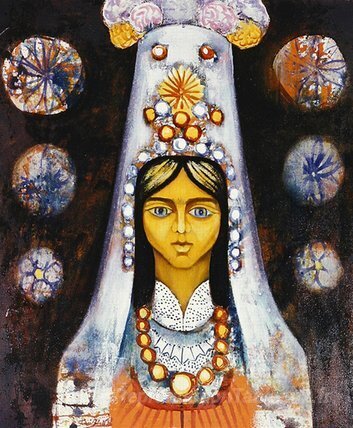 Nous vous proposons une reproduction artisanale sur toile du célèbre tableau 'Tête de femme' de Radi Nedelchev, provenant du Musée de la Reproduction.