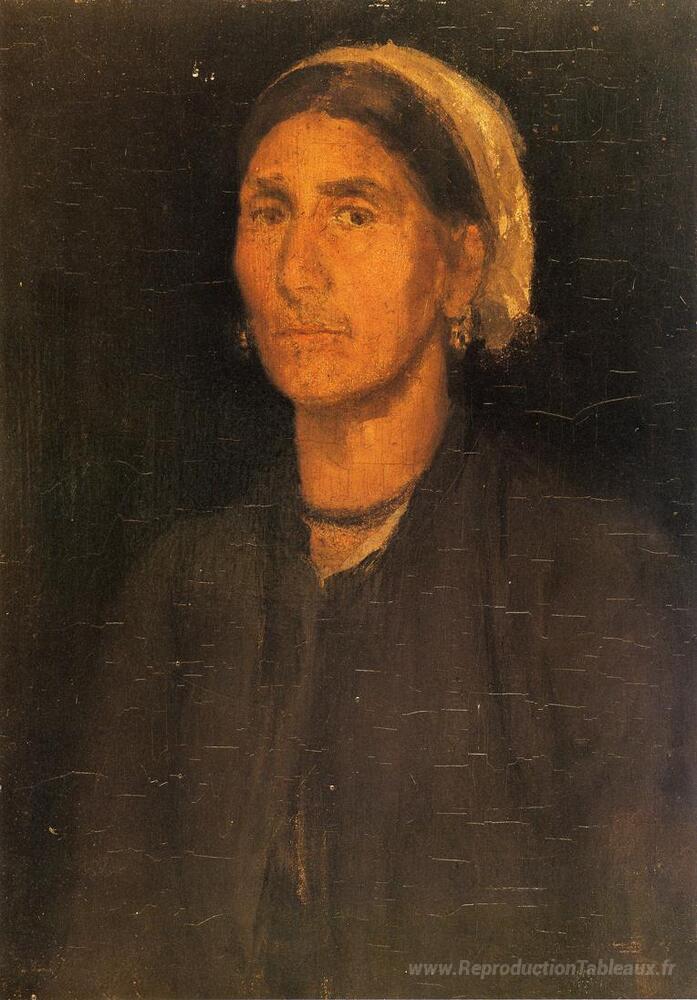 Nous vous proposons une reproduction artisanale sur toile du célèbre tableau 'Tête d'une paysanne' de James McNeill Whistler, provenant du Musée de la Reproduction.