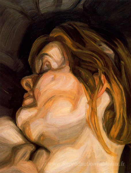 Nous vous proposons une reproduction artisanale sur toile du célèbre tableau 'Tête endormie' de Lucian Freud, provenant du Musée de la Reproduction.