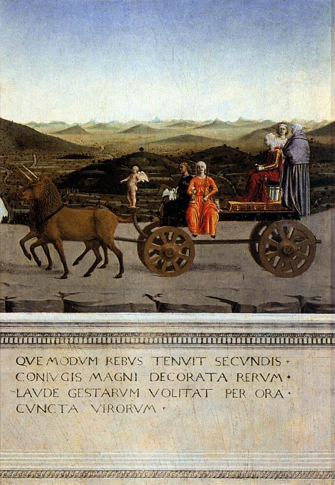 Nous vous proposons une reproduction artisanale sur toile du célèbre tableau 'Triomphe de Battista Sforza' de Piero della Francesca, provenant du Musée de la Reproduction.
