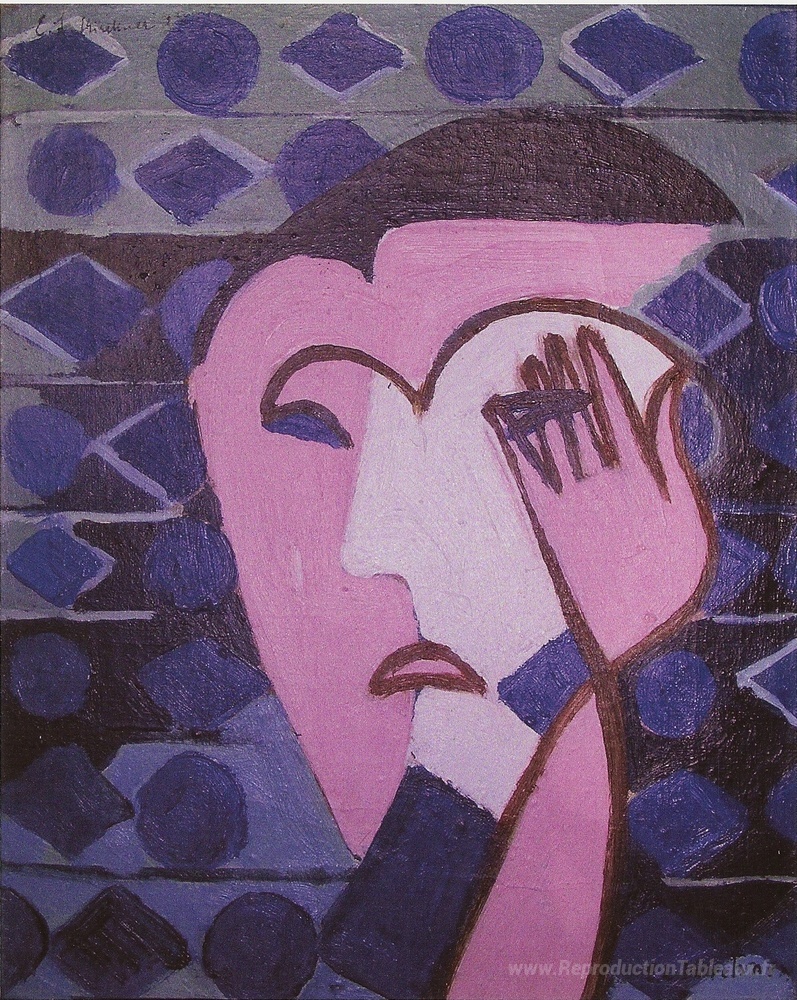 Nous vous proposons une reproduction artisanale sur toile du célèbre tableau 'Triste tête féminine' de Ernst Ludwig Kirchner, provenant du Musée de la Reproduction.