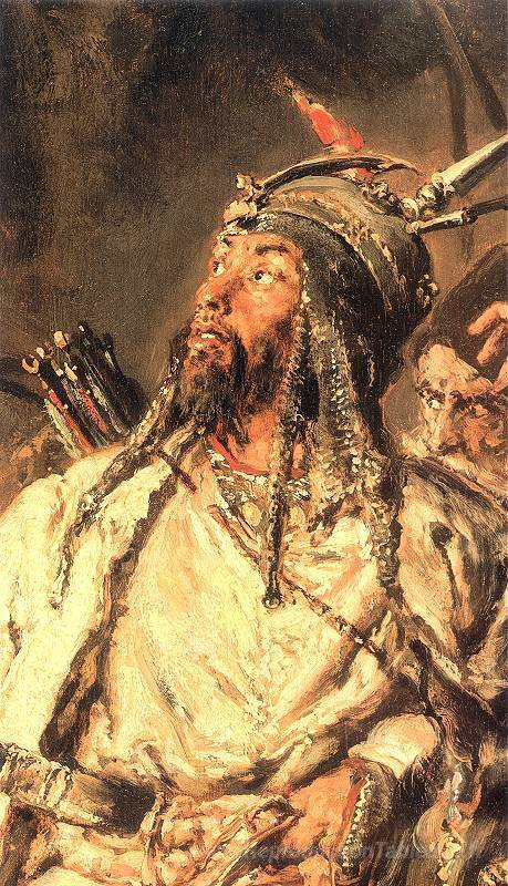 Nous vous proposons une reproduction artisanale sur toile du célèbre tableau 'Tugai bey' de Jan Matejko, provenant du Musée de la Reproduction.