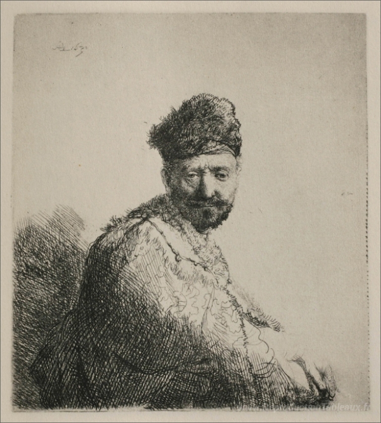 Nous vous proposons une reproduction artisanale sur toile du célèbre tableau 'Un homme avec une barbe courte et une cape brodée' de Rembrandt, provenant du Musée de la Reproduction.
