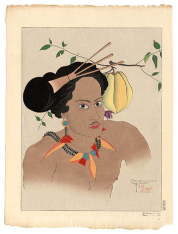 Nous vous proposons une reproduction artisanale sur toile du célèbre tableau 'Un Homme De Yap. Ouest Carolines' de Paul Jacoulet, provenant du Musée de la Reproduction.
