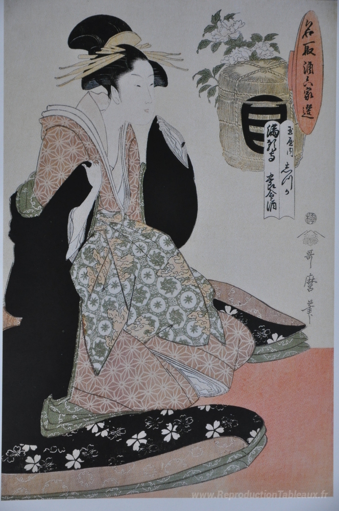 Nous vous proposons une reproduction artisanale sur toile du célèbre tableau 'Un sur une série de six' de Kitagawa Utamaro, provenant du Musée de la Reproduction.
