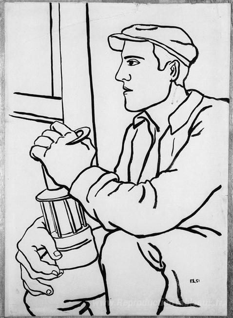 Nous vous proposons une reproduction artisanale sur toile du célèbre tableau 'Un travailleur avec la lampe' de Fernand Leger, provenant du Musée de la Reproduction.