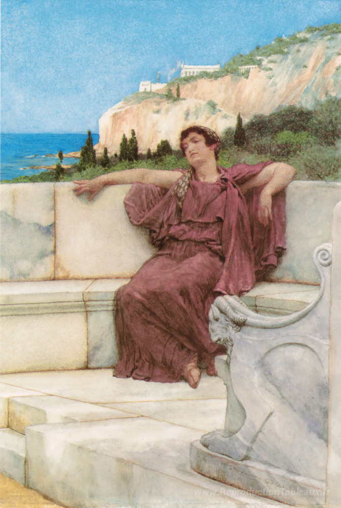 Nous vous proposons une reproduction artisanale sur toile du célèbre tableau 'Une figure femelle reposant (Dolce Far Niente)' de Sir Lawrence Alma-Tadema, provenant du Musée de la Reproduction.