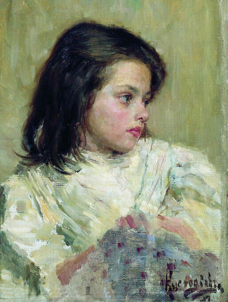 Nous vous proposons une reproduction artisanale sur toile du célèbre tableau 'Une fille. Esquisser' de Boris Kustodiev, provenant du Musée de la Reproduction.