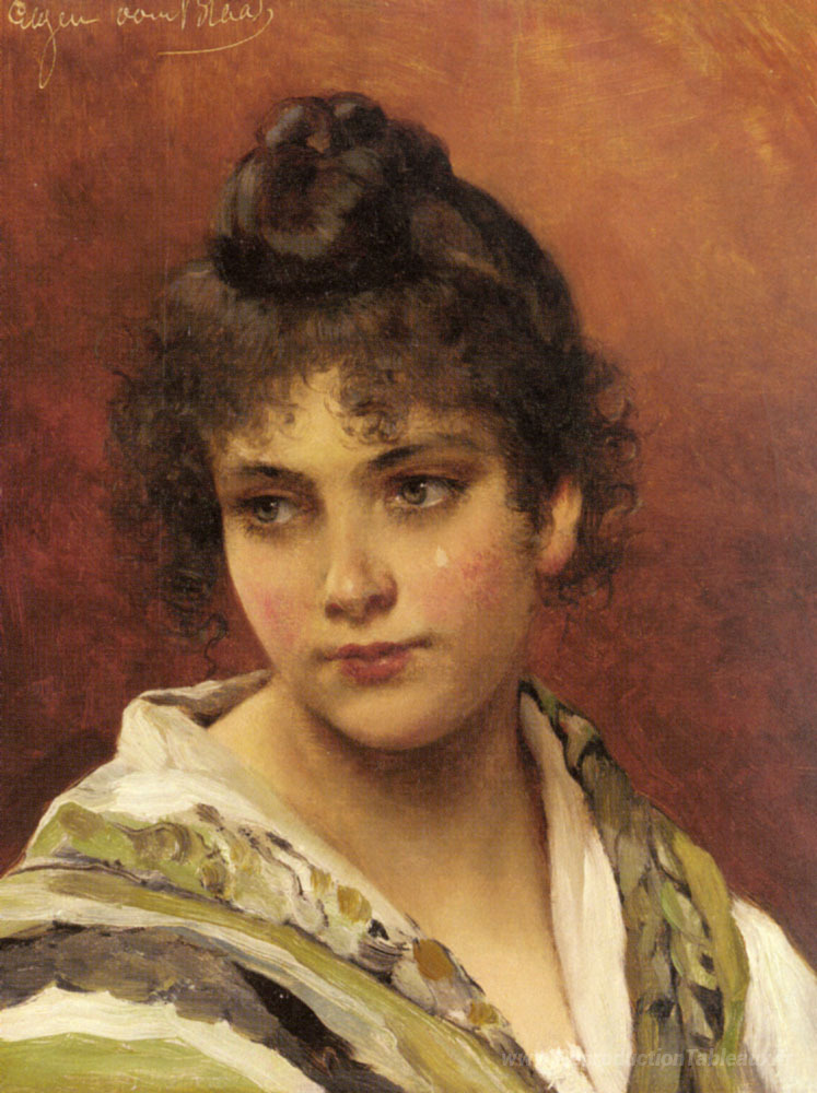 Nous vous proposons une reproduction artisanale sur toile du célèbre tableau 'Une jeune beauté' de Eugene de Blaas, provenant du Musée de la Reproduction.