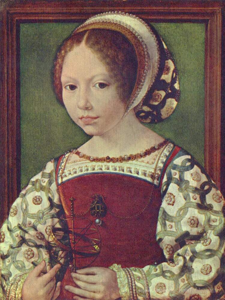 Nous vous proposons une reproduction artisanale sur toile du célèbre tableau 'Une jeune princesse (Dorothea du Danemark0)' de Mabuse, provenant du Musée de la Reproduction.