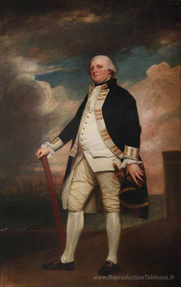 Nous vous proposons une reproduction artisanale sur toile du célèbre tableau 'Vice-amiral George Darby (c.1720–1790)' de George Romney, provenant du Musée de la Reproduction.