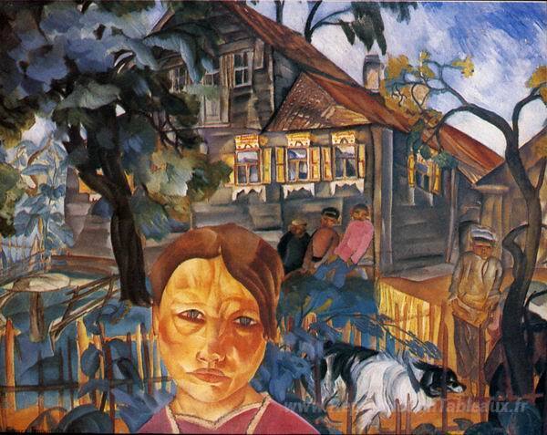 Nous vous proposons une reproduction artisanale sur toile du célèbre tableau 'Villaggio' de Boris Grigoriev, provenant du Musée de la Reproduction.