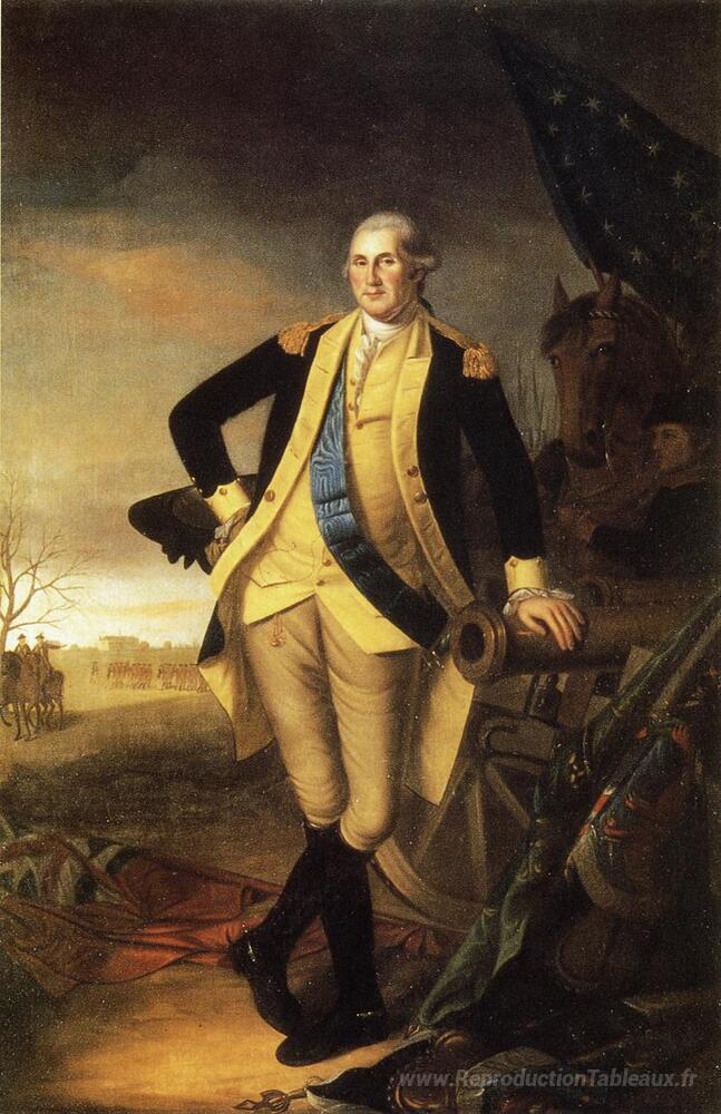 Nous vous proposons une reproduction artisanale sur toile du célèbre tableau 'Washington après la bataille de Princeton, New Jersey' de Charles Willson Peale, provenant du Musée de la Reproduction.