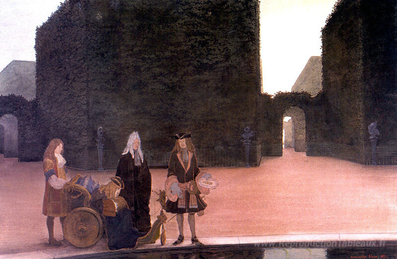 Nous vous proposons une reproduction artisanale sur toile du célèbre tableau 'À la piscine de Ceres' de Alexandre Benois, provenant du Musée de la Reproduction.