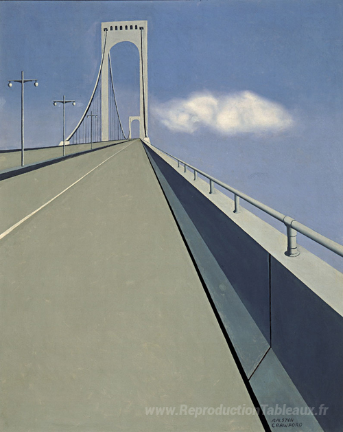 Nous vous proposons une reproduction artisanale sur toile du célèbre tableau 'Whitestone Ponte' de Ralston Crawford, provenant du Musée de la Reproduction.
