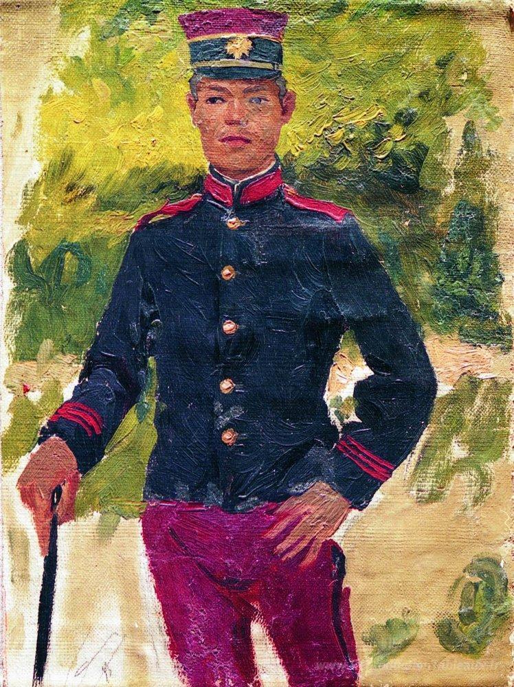 Nous vous proposons une reproduction artisanale sur toile du célèbre tableau 'Le jeune soldat. Style parisien' de Ilya Repin, provenant du Musée de la Reproduction.