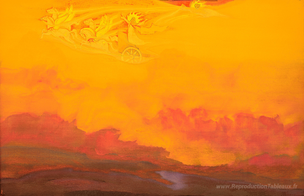 Nous vous proposons une reproduction artisanale sur toile du célèbre tableau 'Élie le prophète' de Nicholas Roerich, provenant du Musée de la Reproduction.