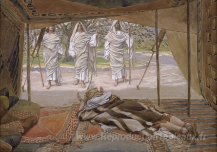 Nous vous proposons une reproduction artisanale sur toile du célèbre tableau 'Abraham et les trois anges' de James Tissot, provenant du Musée de la Reproduction.